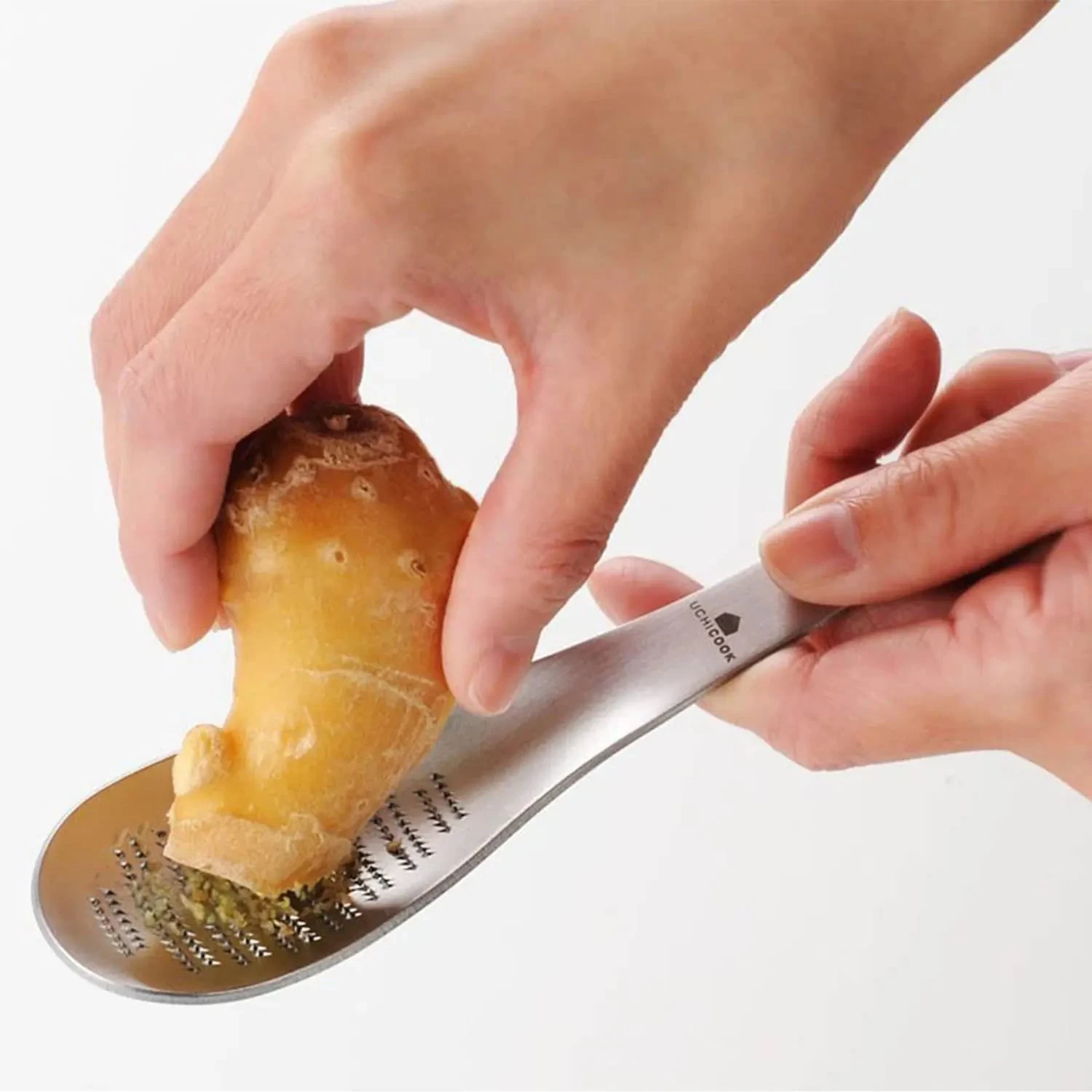 - Shaped like a spoon, you can grate food and mix it using the same tool.