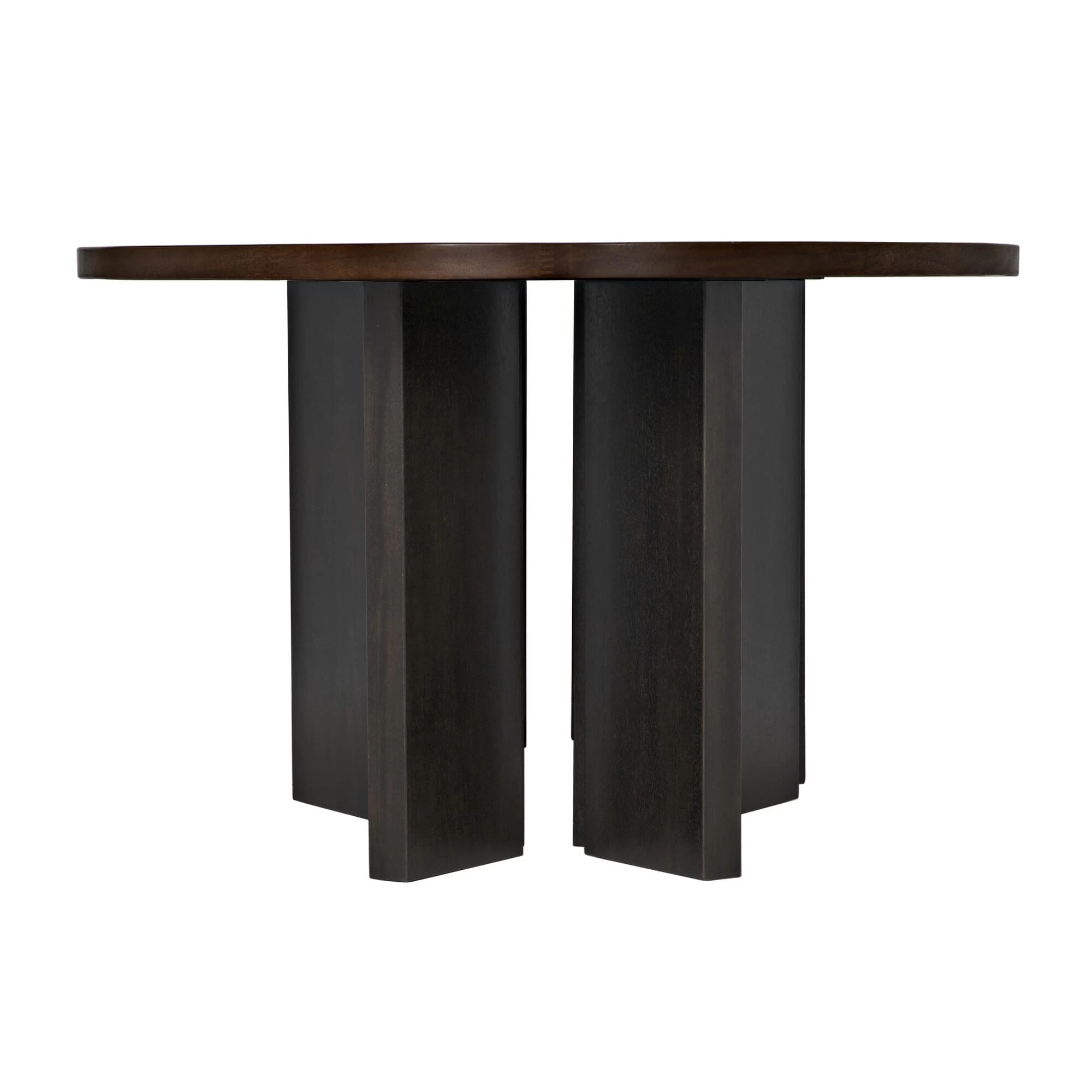 A dazzling display of design virtuosity, the artisan crafted Eaves table features walnut wood finished in dark walnut to bring out a modern, elegant, and contemporary look to any home.
