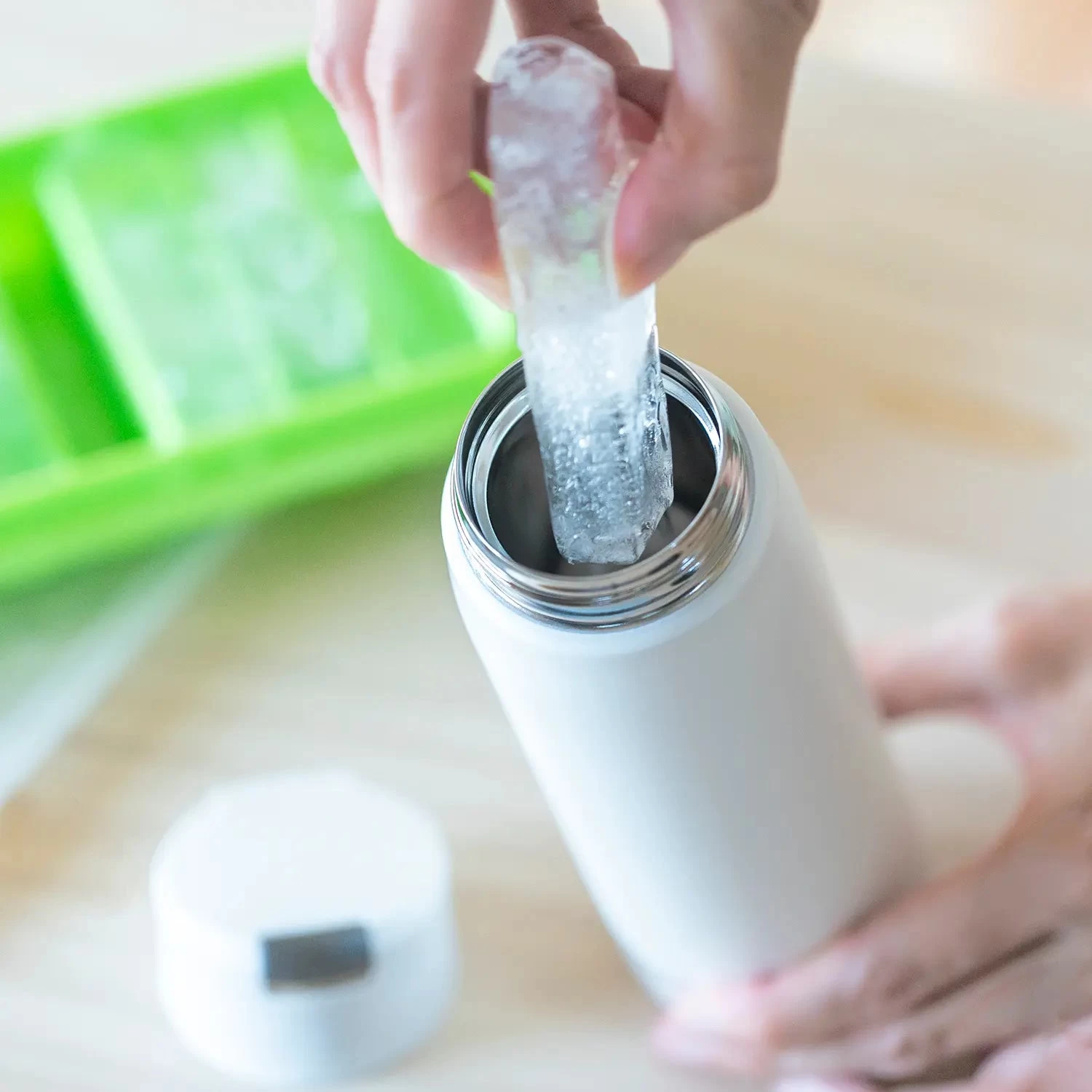 - This ice tray can make ice sticks that fit perfectly in a stainless steel water bottle or a plastic water bottle.