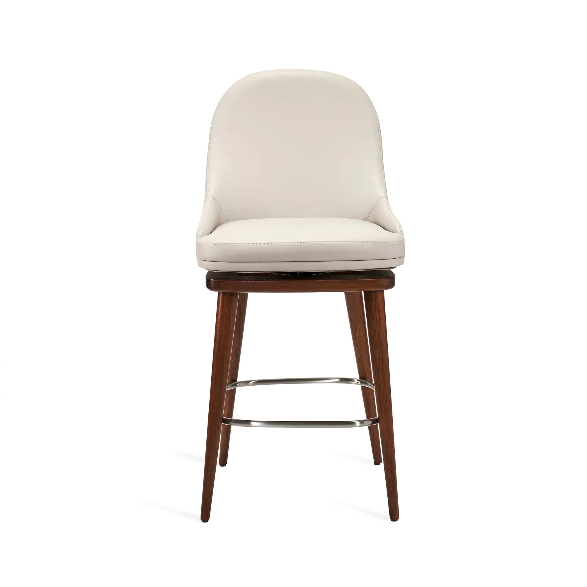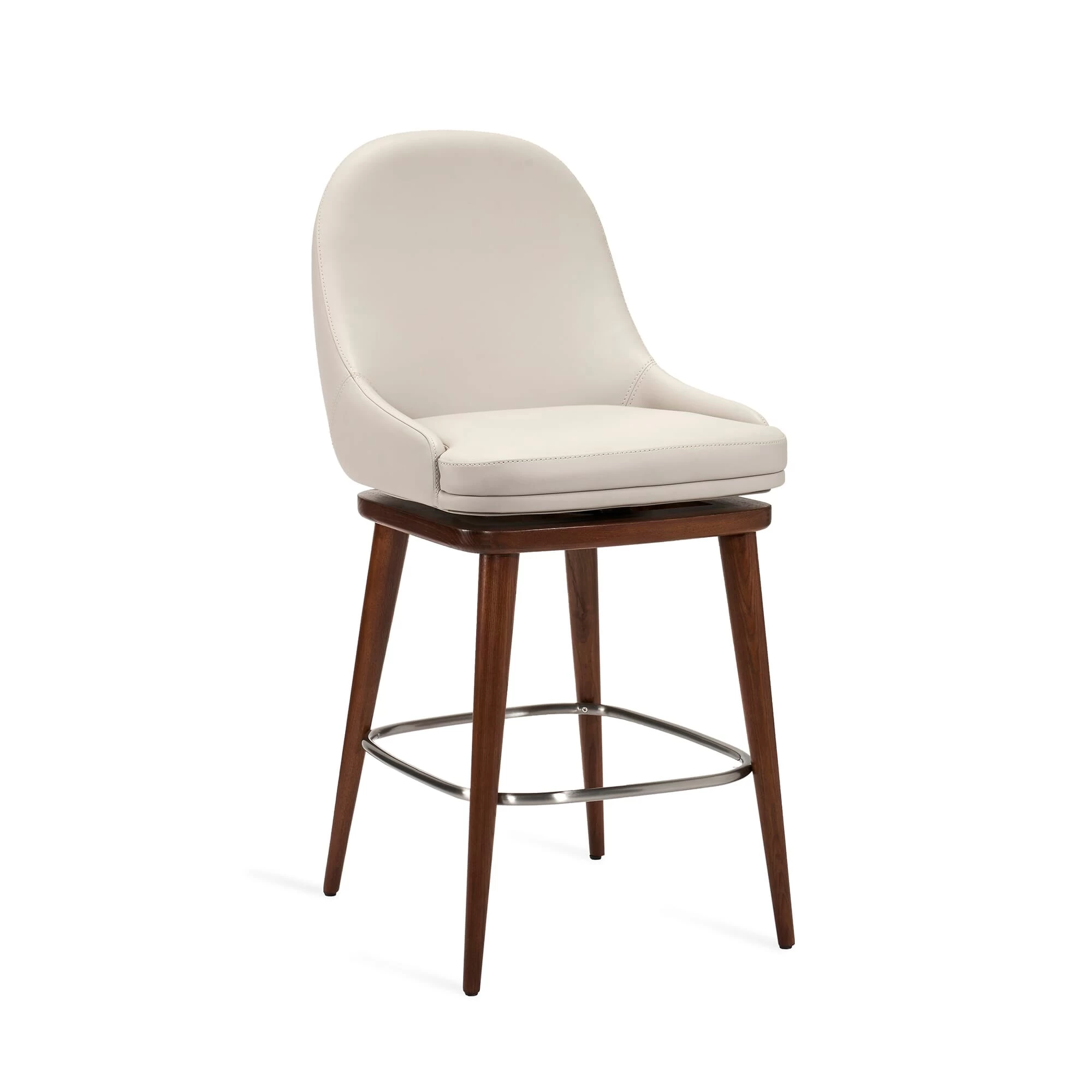 At once sophisticated and playful, the Harper Swivel Counter Stool boasts a wood frame and metal footrest in a quality finish paired with a faux leather seat.