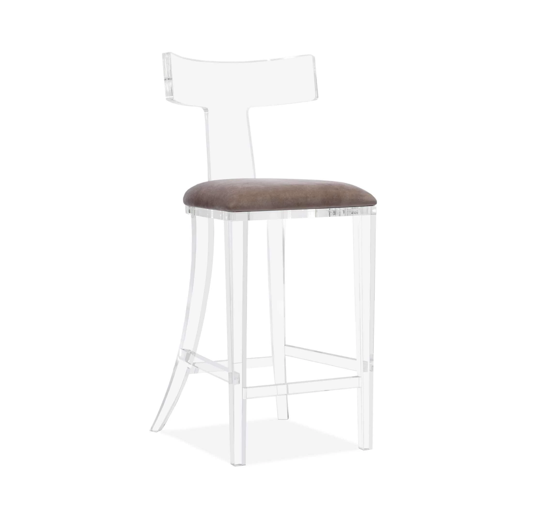 Pairing on-trend acrylic with a grey velvet seat, the Tristan Klismos Bar Stool delivers a fabulous take on a classic silhouette.