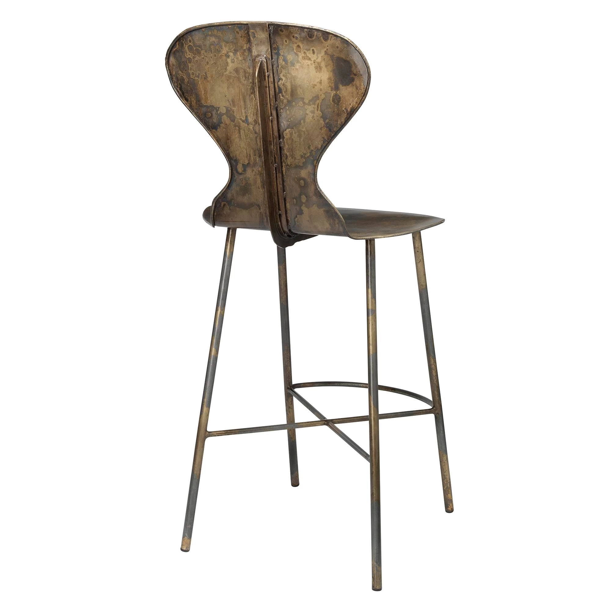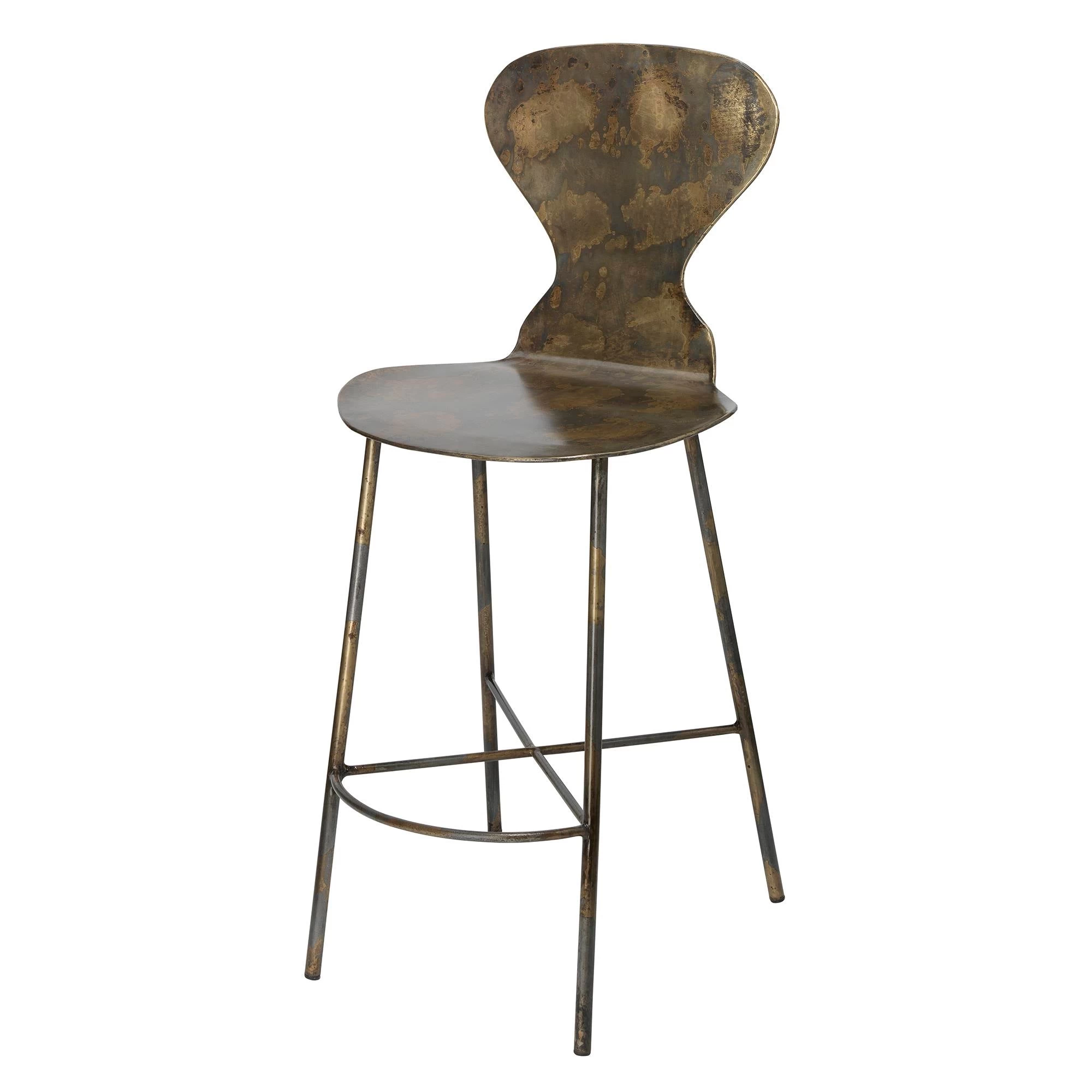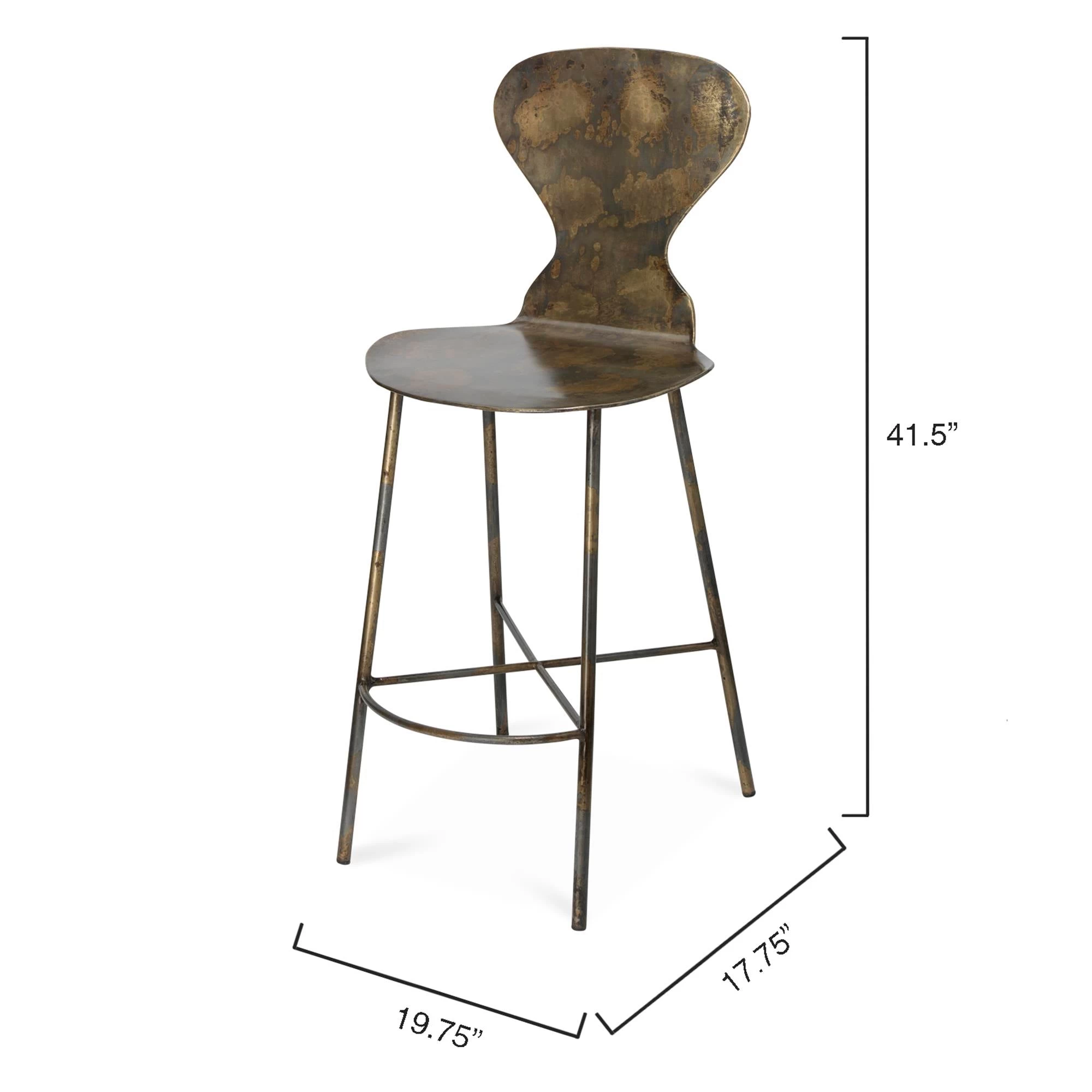 These molded metal stools are made from iron. Their extraordinary look is created with a unique chemical reaction that when applied to the metal creates one-of-a-kind pieces with a stunning marbled effect. They are available in counter or bar heights. Each stool will be different because they are handmade. Finish, pattern & shape will vary per piece. No two will be alike.