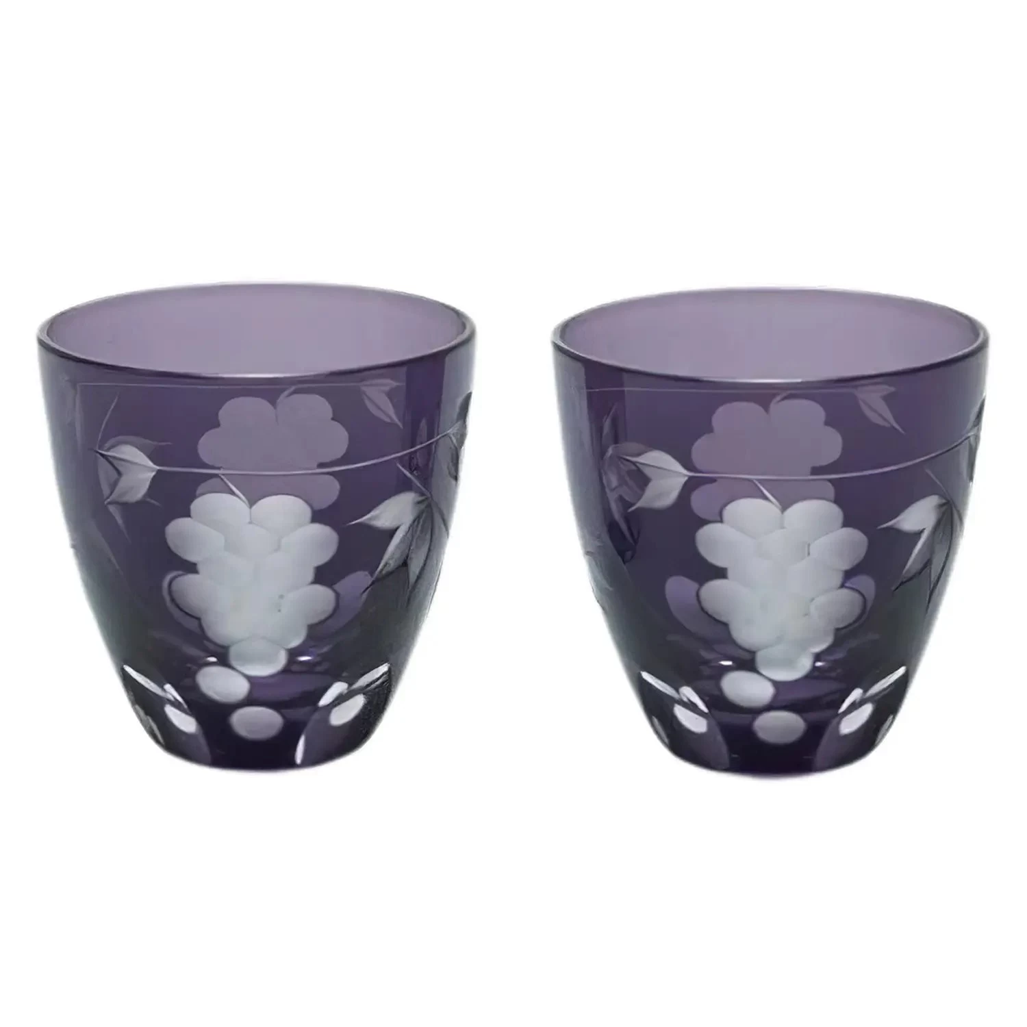 - The “grape pattern” is curved on glass colored in “Edo purple.” Imported from Western culture, the “grape pattern” is considered as an auspicious pattern for fertility in Japanese Buddhist art. In China, grapes are a symbol of having many descendants, since grapes bear a lot of fruits. Traditional yet slightly European design of the cutting glass goes well with modern table settings.