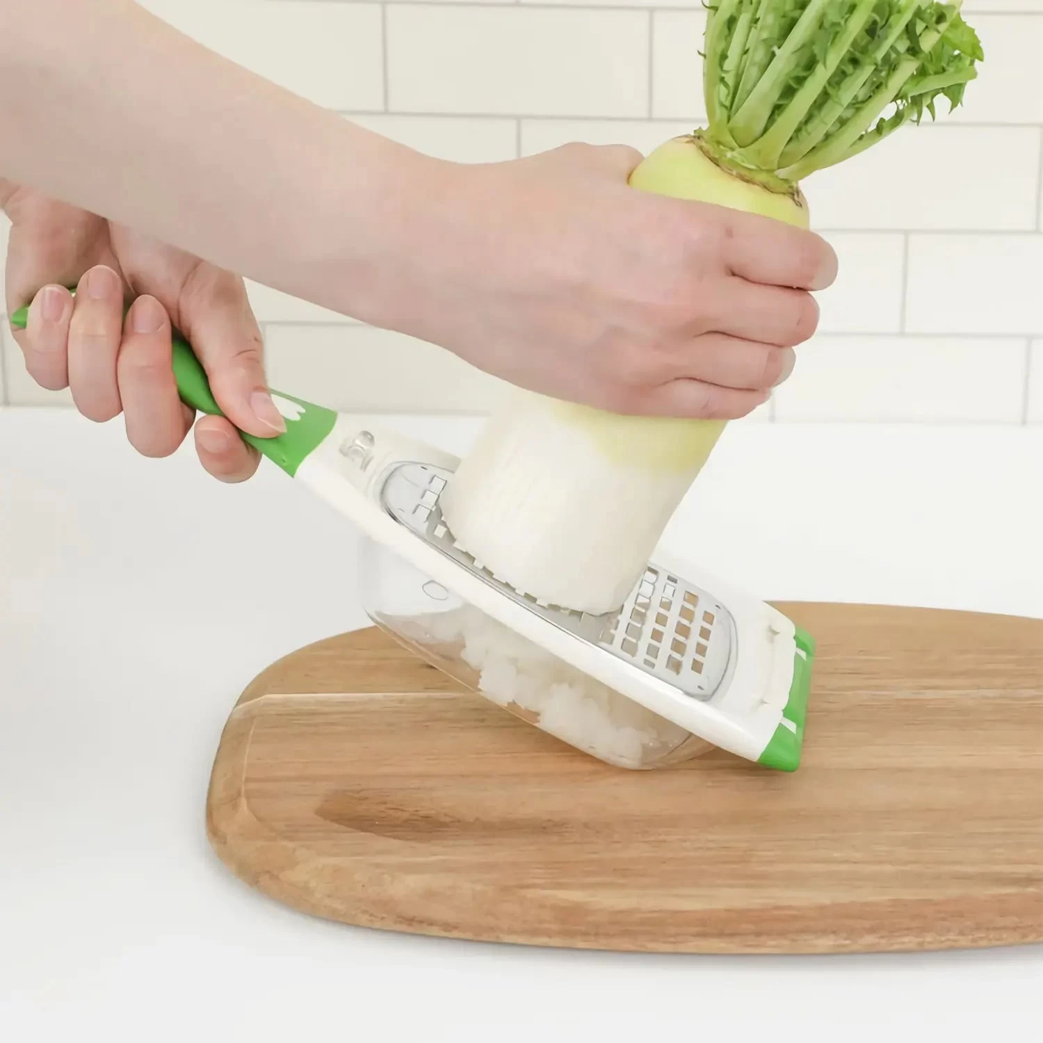 - This grater enables you to obtain fine-grained and fluffy grated daikon radish.