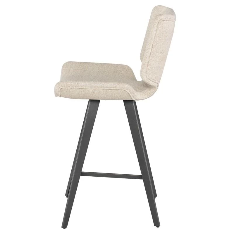 Spacious in design, the Astra counter stool effortlessly melds the sophistication of a sturdy, casual seat with the charm of its slightly winged edges. From the back, its shape is accented by a refined piping detail. Set on titanium steel legs, the Astra is available in an elegant velour finish or textural boucle.