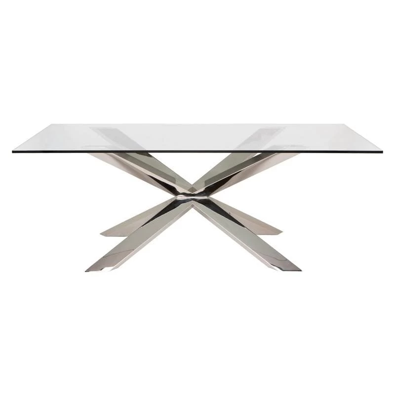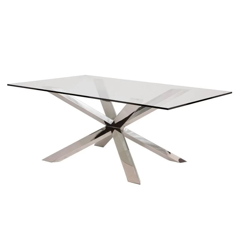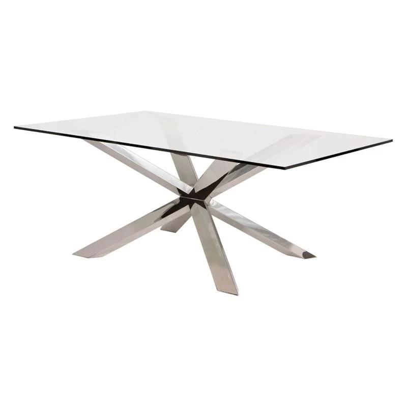 The Couture dining table is an inspired example of bold contemporary design pairing brilliant stainless steel with clear tempered glass. The Couture’s appeal lies in contrasts, the union of a dynamic steel frame with a sober handsome glass table top, the result striking.