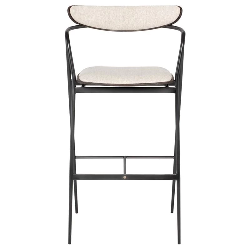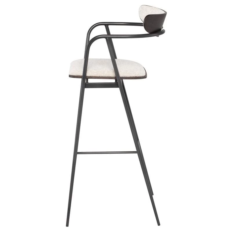 Featuring a stylish, thin matte black frame, the Gianni Bar Stool is polished and poised. The slim silhouette is accented by a structured seat that gives off the impression of hovering slightly above its supporting legs, while a generously curved backrest completes the comfortable design.