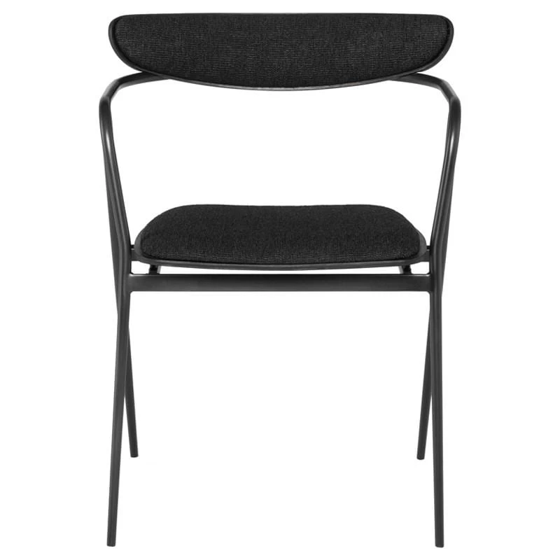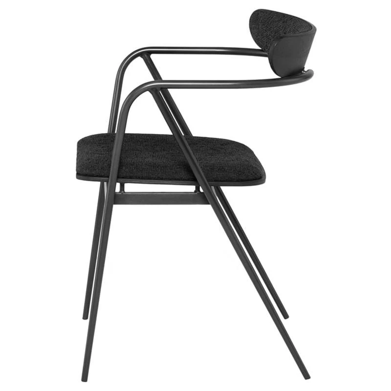 Featuring a stylish, thin matte black frame, the Gianni Dining Chair is polished and poised. The slim silhouette is accented by a boucle-covered seat that gives off the impression of hovering slightly above its supporting legs, while a generously curved backrest completes the comfortable design.