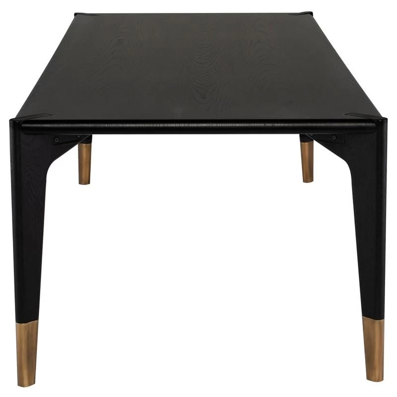 Understated with refined hints of glamour the Quattro dining table makes a confident and poised statement. The dignified simplicity of the onyx oak veneer top, oak legs and polished lines are underscored by stylish gold hardware.
