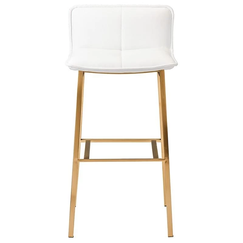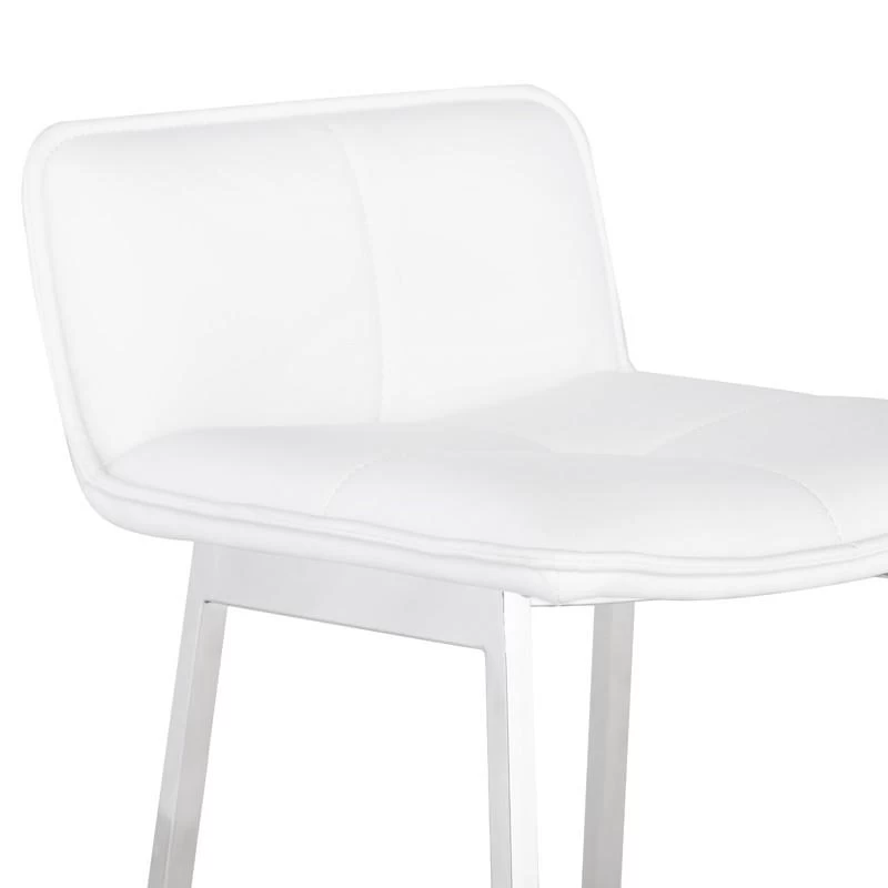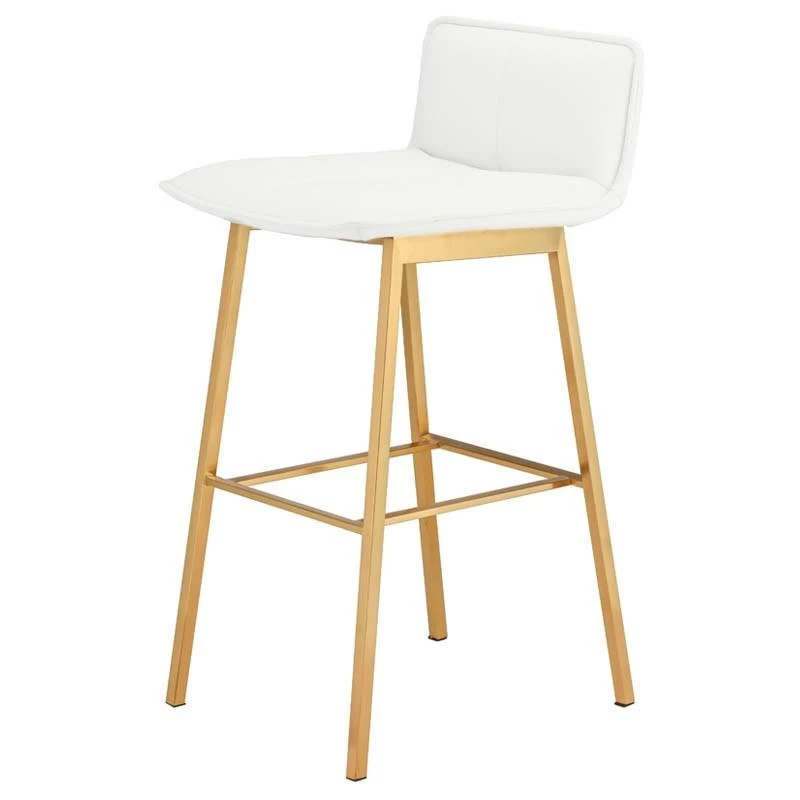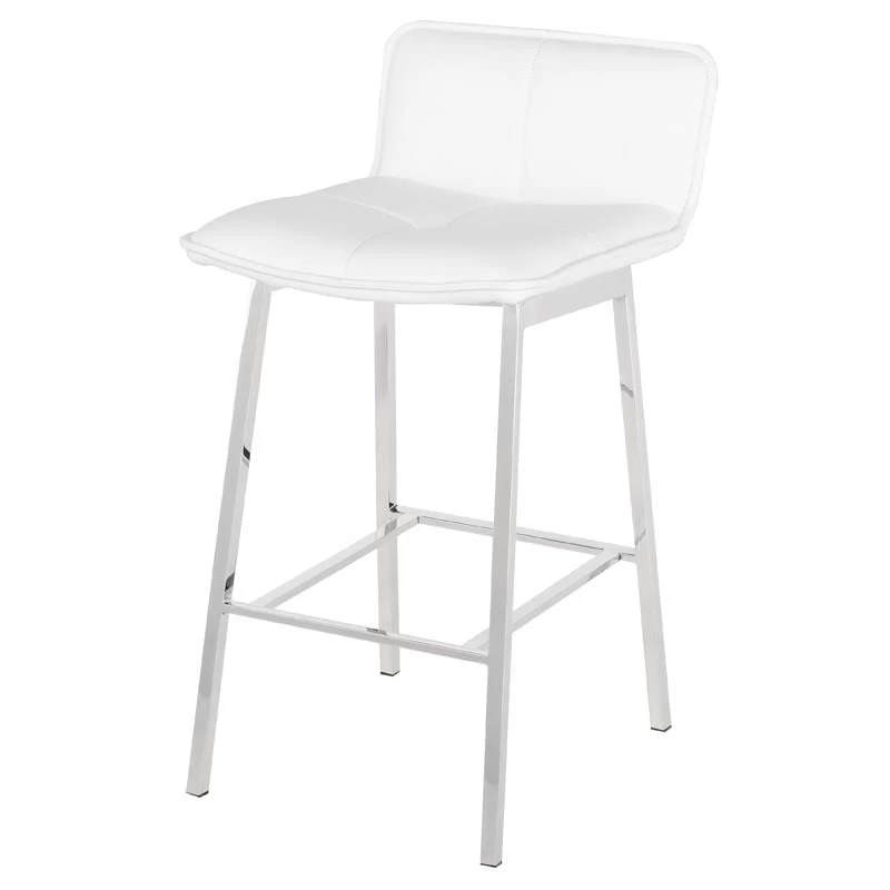 The Sabrina counter stool offers a generously padded seat and back, set atop a highly polished, chrome-finished stainless-steel base and legs.