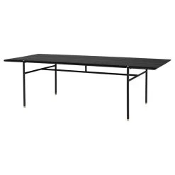 Rational and warm. Versatile and singular. The Stacking Dining Table is crafted from solid oak, with blackened steel legs and brass accents-similar to other products in our Stacking collection. Its streamlined aesthetic and considered details welcome flexible chair pairings. From relaxing breakfasts to special gatherings, the Stacking Dining Table delivers the perfect framework for an inspired life.