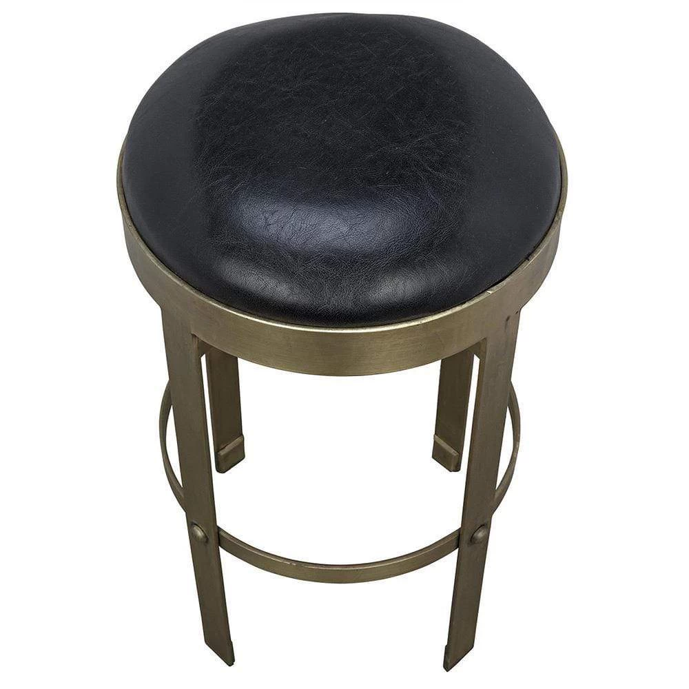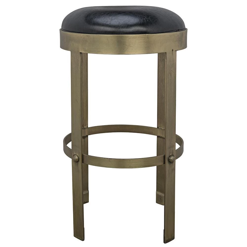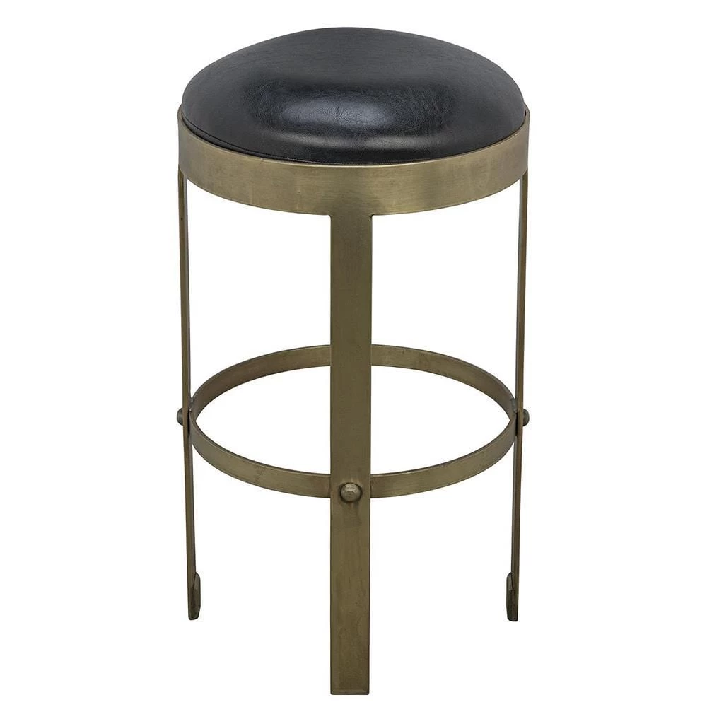 Thick circular bands of metal form this stool’s footrest and support its black leather seat. Royally finished in gold with steam-punk inspired rivet details on the leg, this is a chair suitable for any modern monarch.