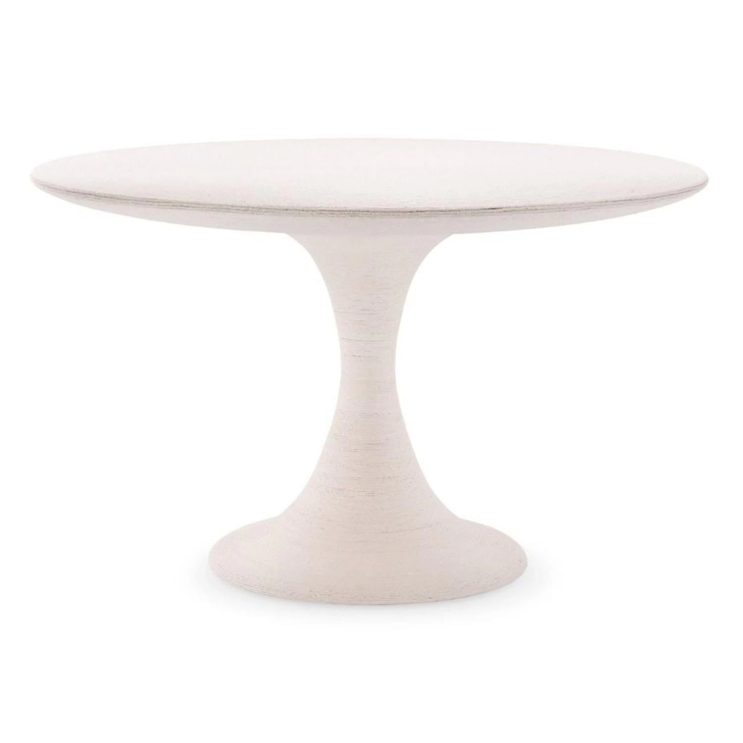 Made of solid mahogany and covered top to bottom in a twisted natural rope, the Portia Dining Table comes in two sizes and two finishes. The white colorway is wrapped in a loom material while the gray colorway is wrapped in rattan.