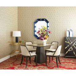 Worlds Away Portia Dining Table With 48″ Diameter Beveled Glass – Black Powder Coat