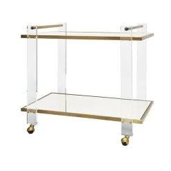 Worlds Away Pierce Acrylic Leg Bar Cart With Inset Mirror & Antique Brass Frame