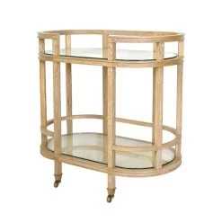Worlds Away Zaina Oval Bar Cart With Two Natural Cane Shelves & Cerused Oak Frame