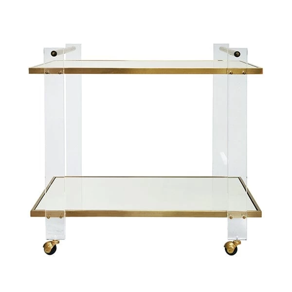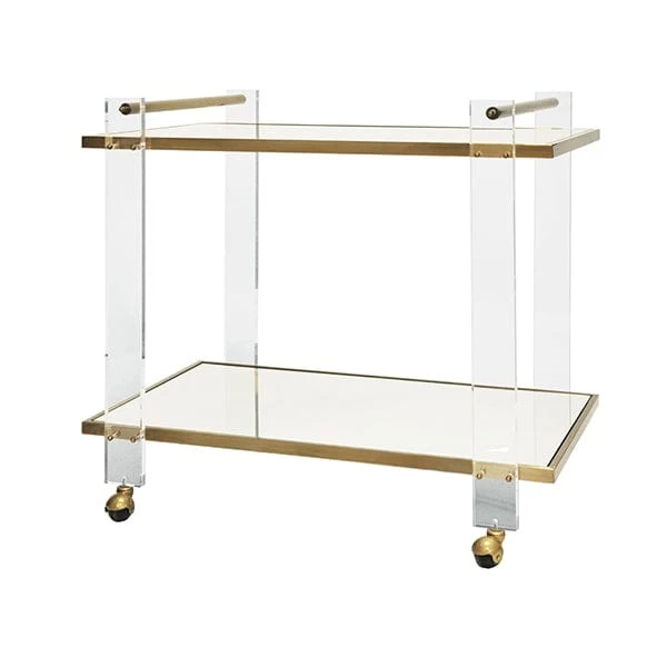 Elevate your bar cart game with Pierce! Two inset mirror shelving tiers are defined by an antique brass and acrylic frame. The mix of materials here is so on-trend, yet so timeless, you’ll want to build the room’s entire finish palette around it.