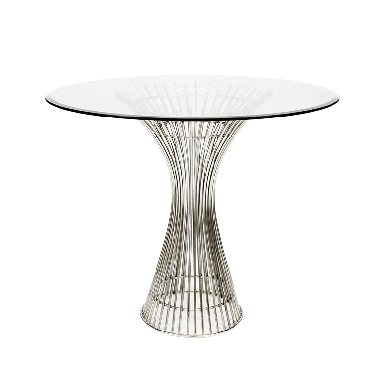 Our round, cage style side table base exudes sophistication and feminine grace. Sweeping iron spindles are crafted from stainless steel for a sleek, modern profile. Curvaceous, clean, and comely, Powell is truly sublime.